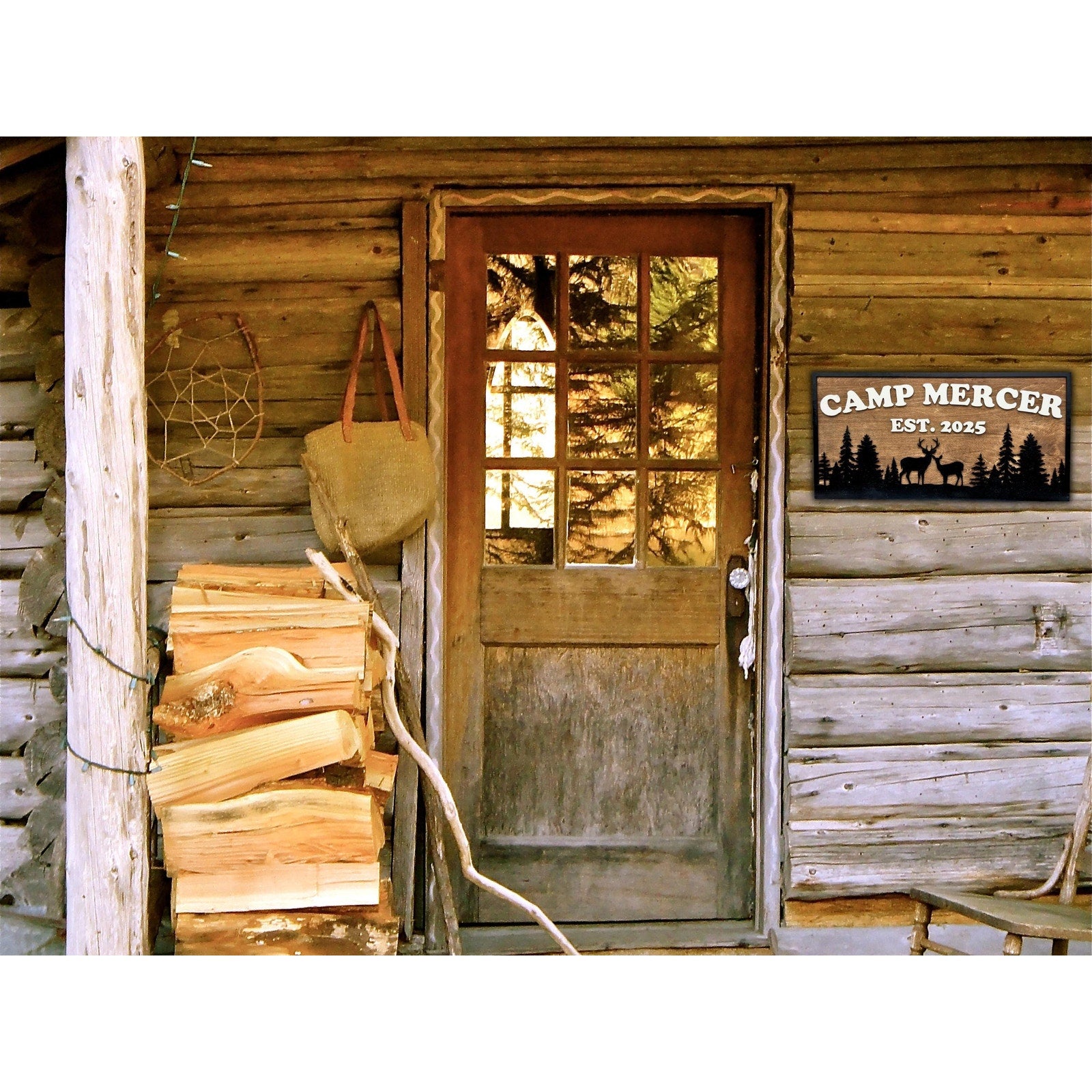 Custom Camp Sign with Deer & Trees | Personalized Cabin, Lake House, River House, Hunting Camp, Man Cave or Bar Decor