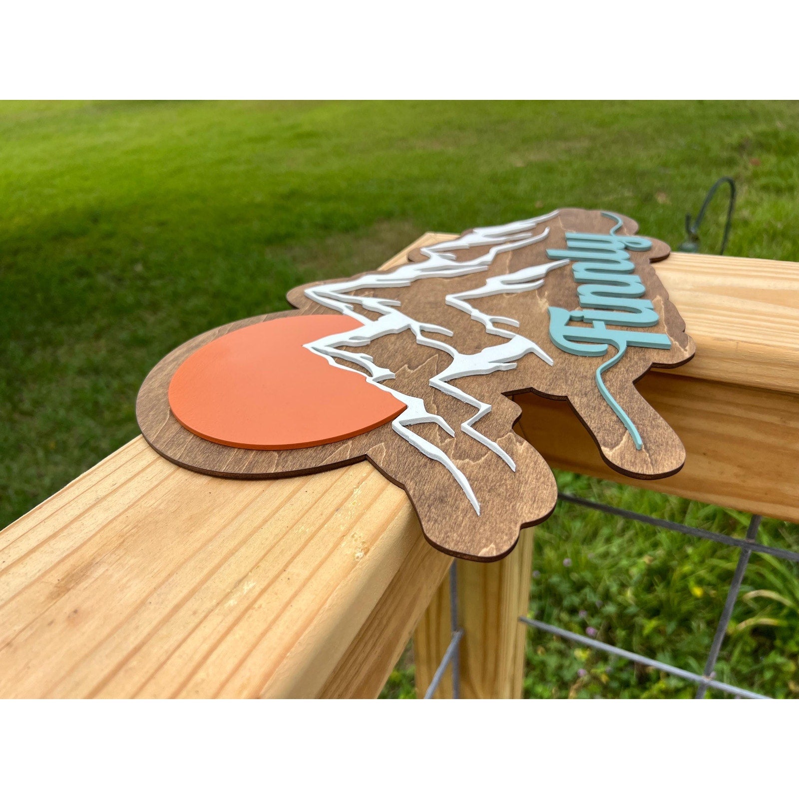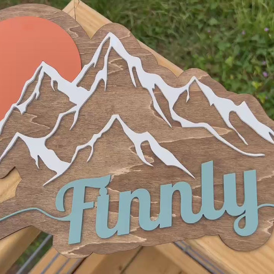 Custom Mountain Name Sign: Rustic Wood Nursery Decor (16"x11.5")