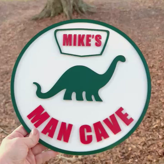 Custom Sinclair Dinosaur Man Cave Sign – Personalized Name – 11.5” Gas Station Style Wall Decor for Garage, Bar, Game Room, Shop Gift