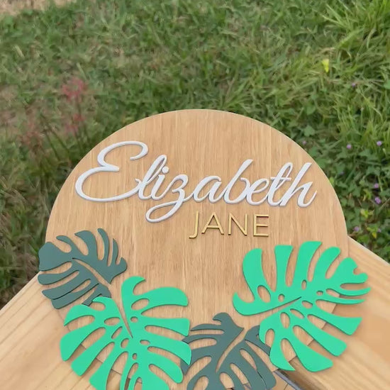 Monstera Leaf Wooden Name Sign: Custom Nursery Decor, 3D Lettering